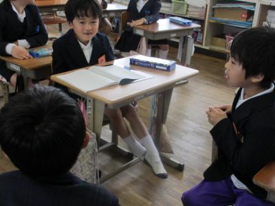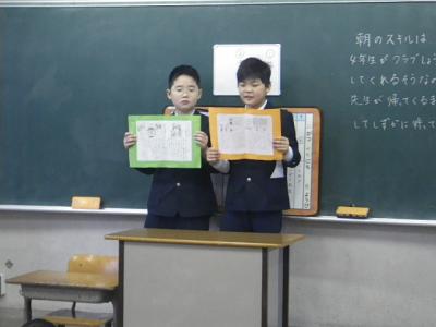 5年生は道徳の授業で2つの立場に分かれて話合いをしていました。友達の意見を聞いて考え、そして自分の思いを伝える・・・そんな学習を積み重ねて自己を見つめ、自己の生き方についての考えを深めていきます。あとで聞いたら全員発表できたそうです