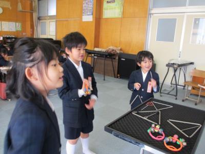 さっそく1年生は、くつばこへ。どうやったらくつがまっすぐそろうかやってみていました。今日から、「ぴたっ」と、はきものも心もそろうはず