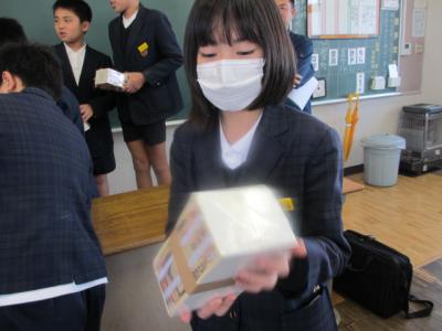 上分町にある『丸石製紙株式会社』様より、マスクを寄付していただきました。温かい気持ちに支えられ、子どもたちも教職員も頑張る気持ちがわいてきます。本当にありがとうございました。