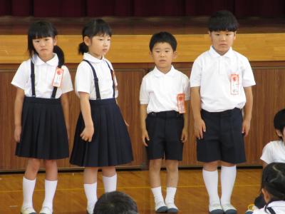 今朝のつどいは、明日行われる予定の市陸上運動記録会に向けて、壮行会をしました。上分小学校から24名の代表選手が参加します。一人一人が自己ベストめざして頑張ってほしいです。頑張れ 上分っ子