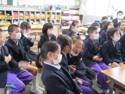 読み聞かせボランティアの『ふきのとう』さんが来てくださいました。子どもたちは読み聞かせが大好きです読書は知識を得るだけではなく、「言葉」を通して想像力を育んだり、自分の世界を広げたりします。「読書は心の栄養」と言われています。子どもたちにはたくさんの本と出会い、心豊かな子に育ってほしいと願っています。『ふきのとう』のみなさま、本当にありがとうございます