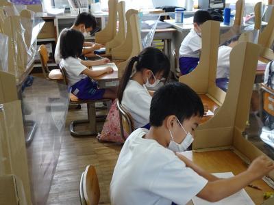 6年生は理科のテスト、4年生は社会科の発表でした。みんな真剣に取り組めていましたよ。