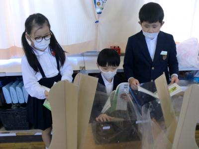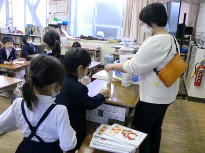 1年生は、家に持ち帰るお手紙(文書類)を配っていました。